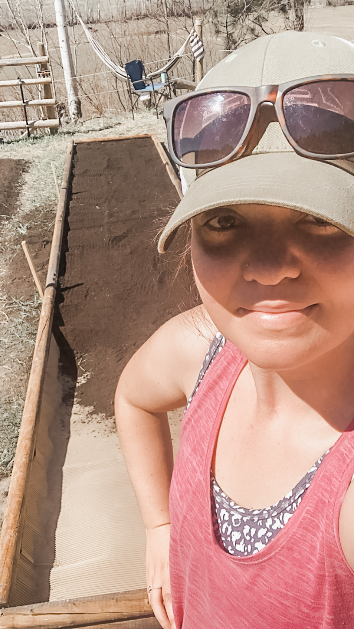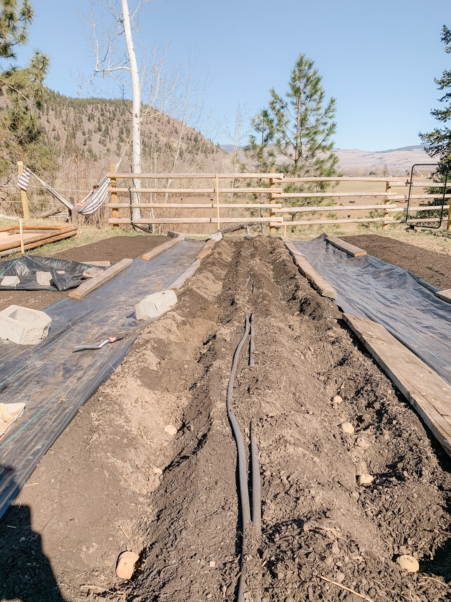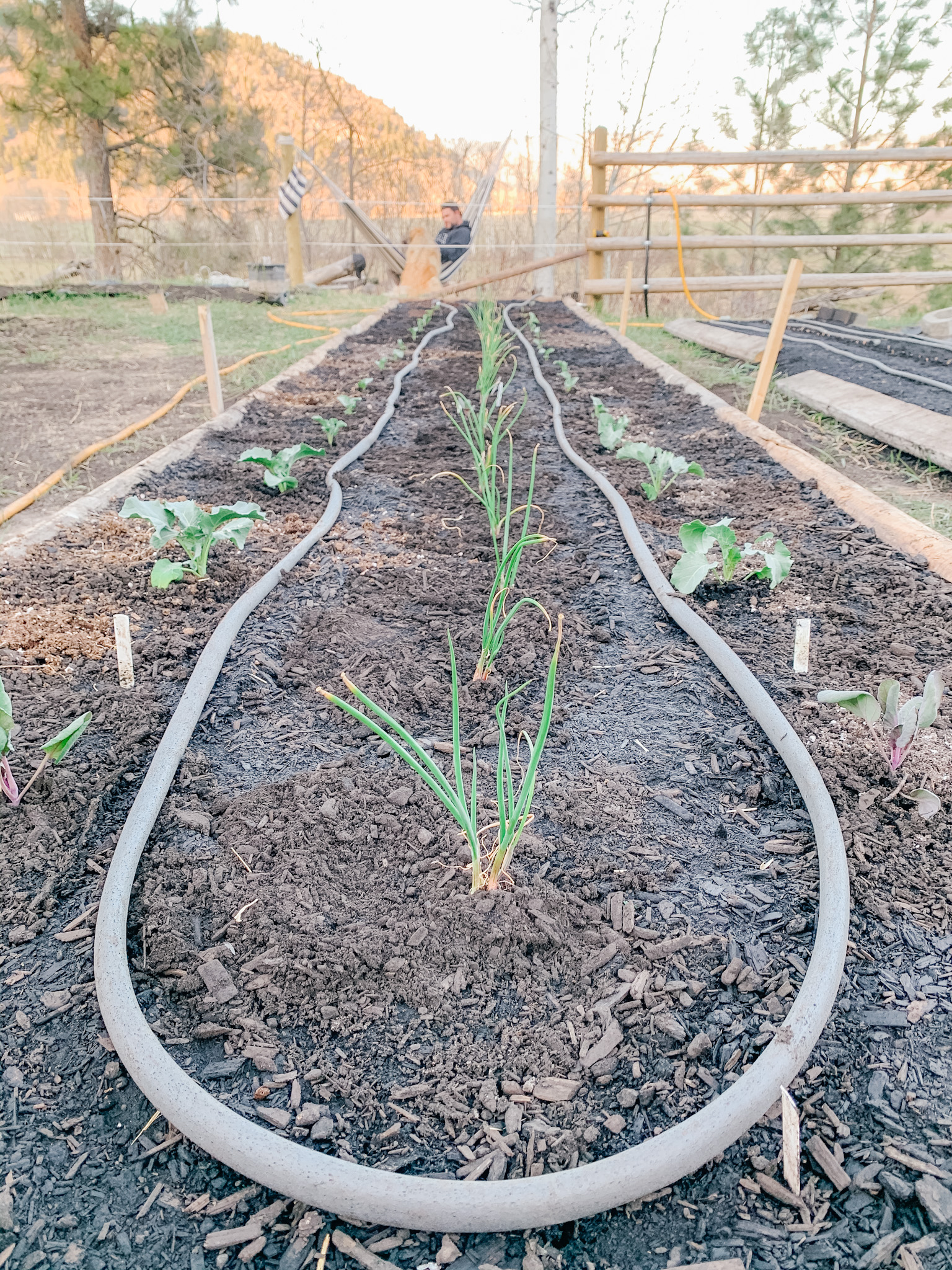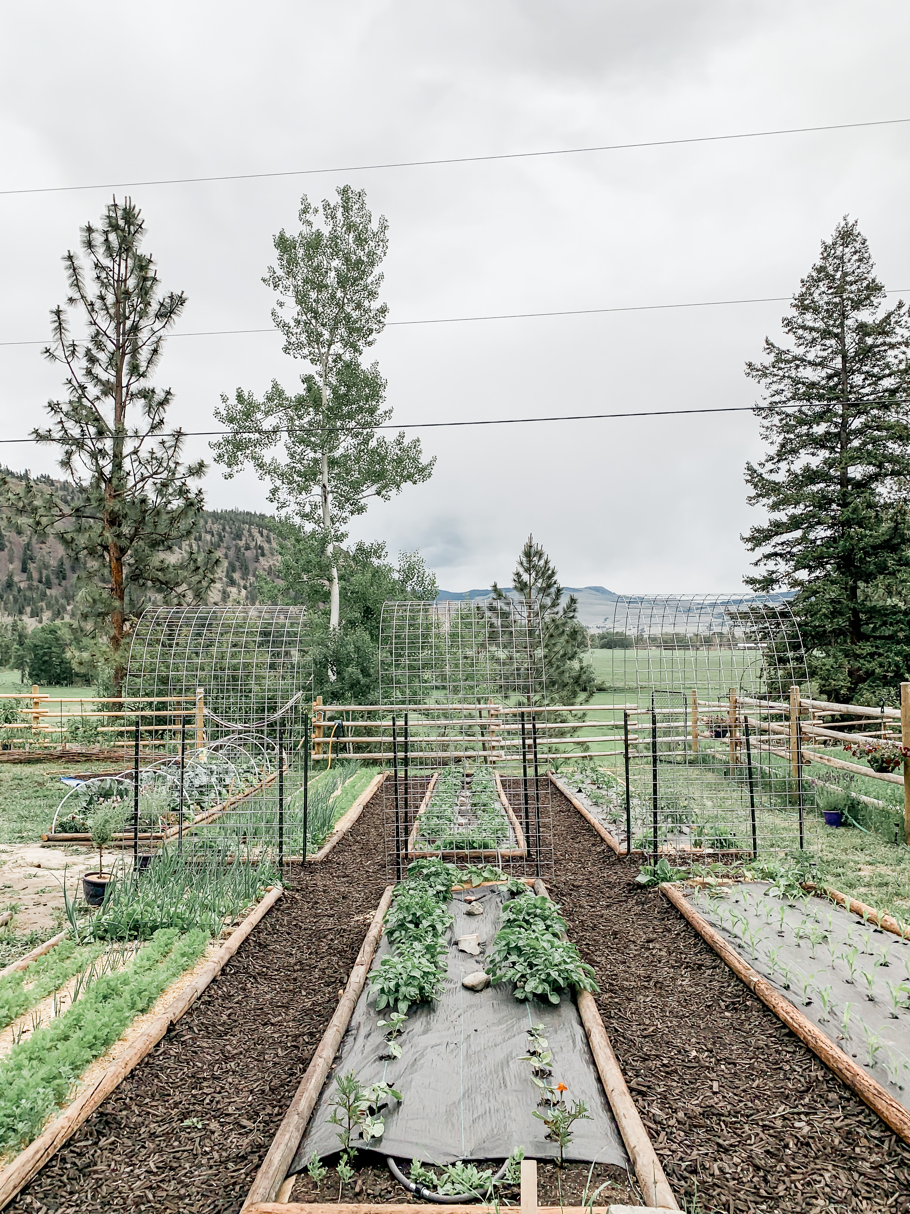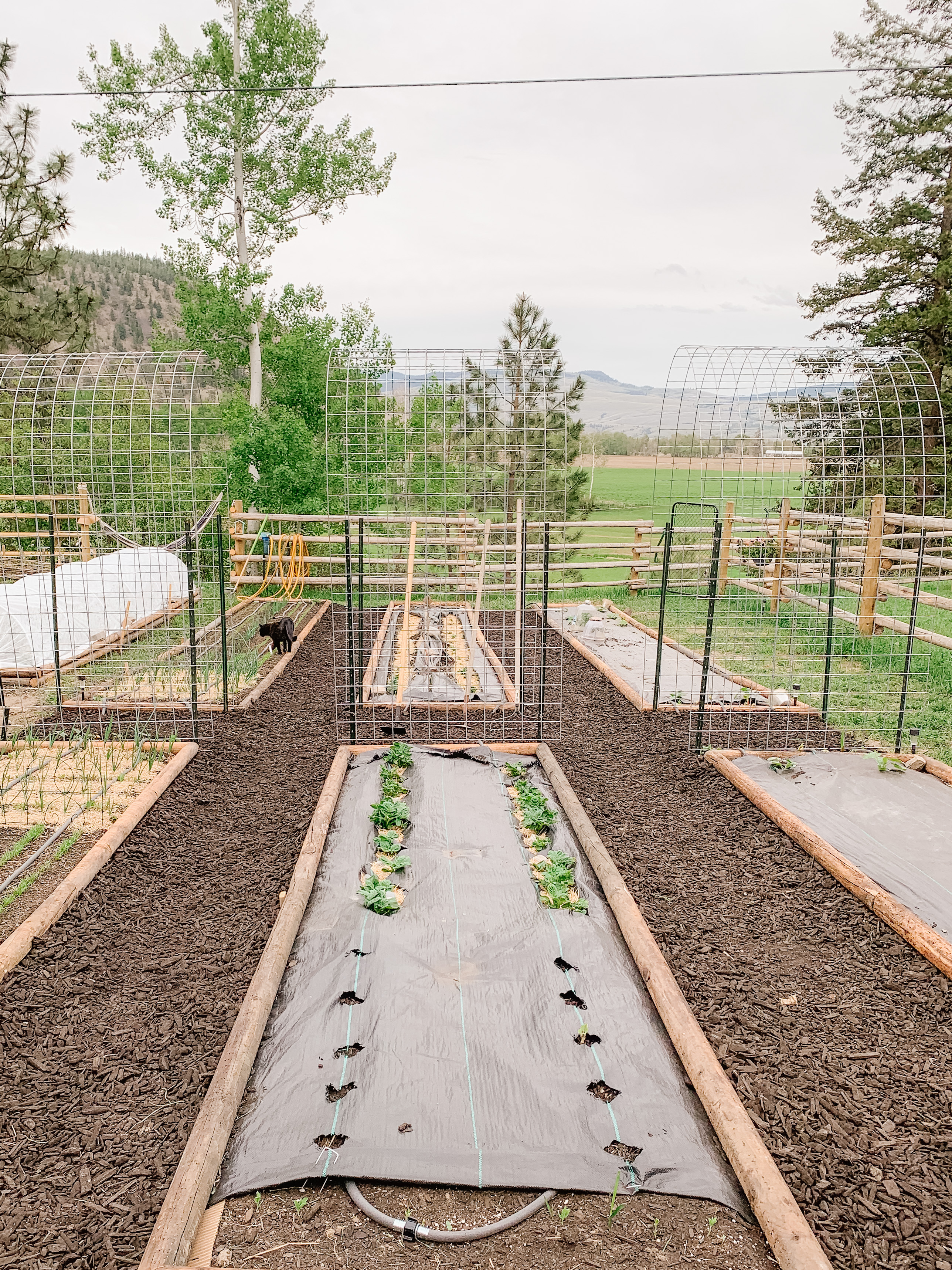 We did have to till our main garden area lightly before laying down the cardboard to helps level out the ground, as it had been torn up the previous month from construction! We used a compost mulch for our garden beds from a local composting facility because we didn’t have enough of our own, but, when possible, it is always more beneficial to use your own compost if you can. For our walkways we used regular mulch as we wanted something that would still help to enhance the soil underneath over time as it slowly breaks down as well as help with water retention and keeping weeds at bay!